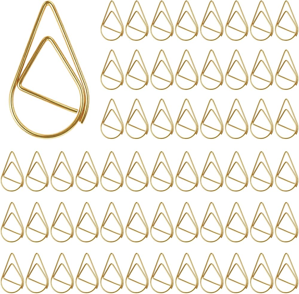 100 Pcs Small Gold Paper Clips, Waterdrop Paperclips for Bookmarks & Photos, Cute Decorative Paperclips for Office, Wedding Invitations, Scrapbooking, 15 x 25mm, Gold
