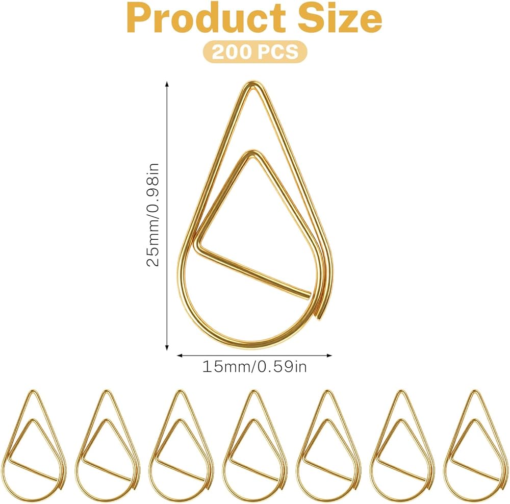 200pcs golden water droplet paper clips