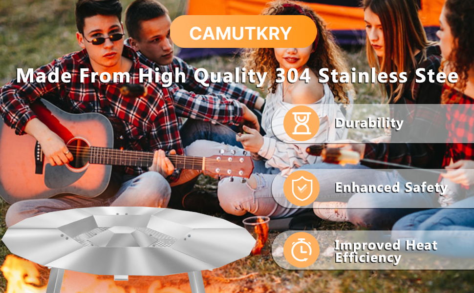 Durable Design: Our fire pit heat deflector is made from thickened stainless steel, specially treated to provide outstanding rust resistance and prevent warping. This robust design enhances the product's structural strength, ensuring stability and durability during use. Whether you're using it indoors or outdoors, it remains flat and resistant to deformation over time, keeping your fire pit both attractive and functional for years to come