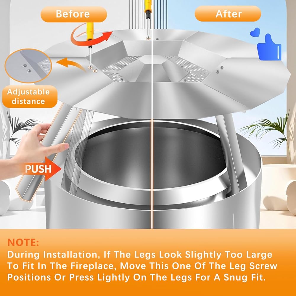 Note: If the legs seem slightly too large to fit into the stove during installation, you can adjust the screw tightness or apply light pressure to insert the legs for a snug fit. Should you encounter any issues with our product, please don't hesitate to reach out to us—we're here to help