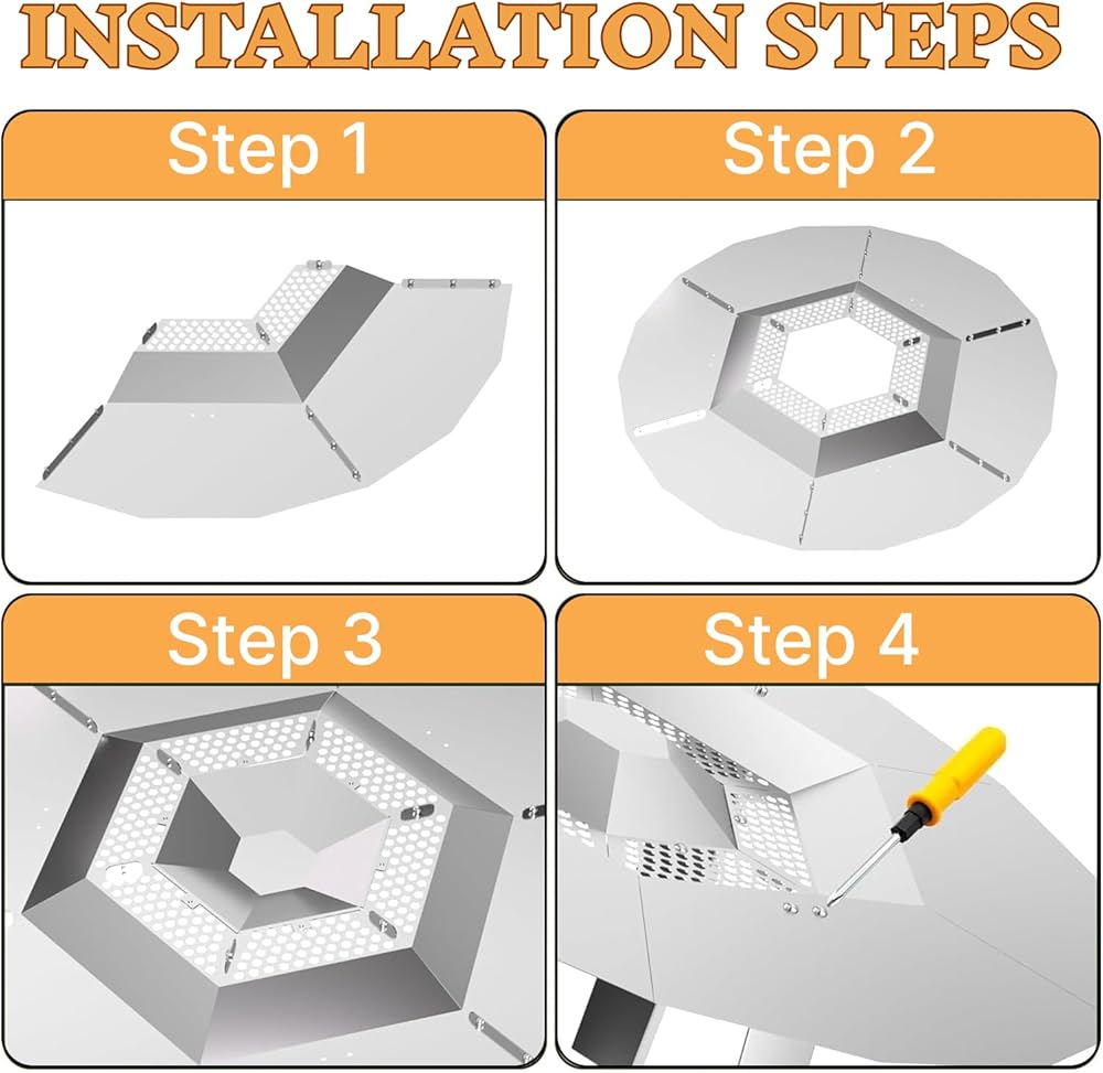 Easy Installation: Enjoy a hassle-free setup with our deflector, designed for effortless installation and dismantling without the need for additional tools or parts. Each package comes complete with 6 fan-shaped deflector plates, 1 Center Disc, 3 sturdy support legs, and a comprehensive screw kit, making assembly straightforward and convenient