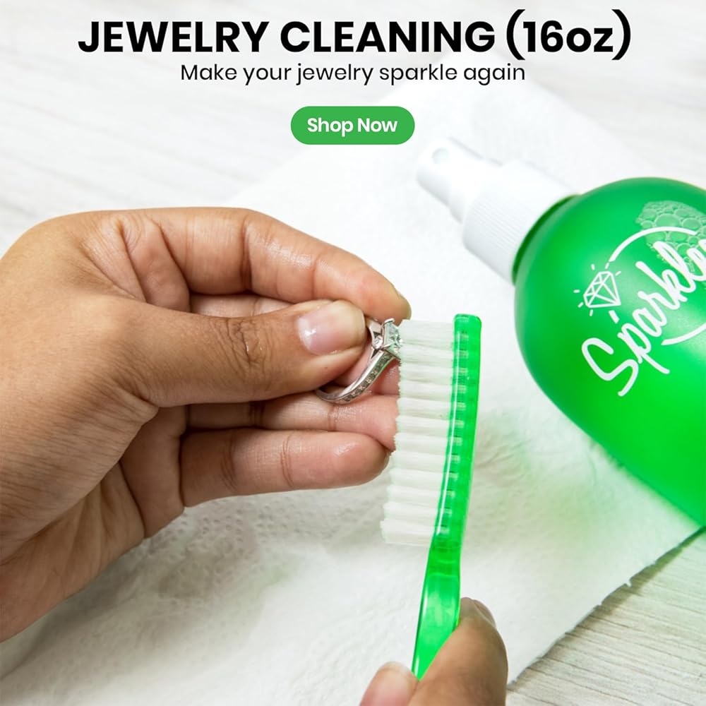 The Only Jewelry Cleaning Kit You'll Ever Need Tired of dull, lifeless jewelry? The SPARKLEAN Complete Jewelry Cleaning Kit gives you three professional-grade tools to clean, detail, and polish every piece in your collection — from everyday rings to heirloom necklaces. What's Inside Your Kit: 1. Ammonia-Free Jewelry Cleaner Spray (2 oz) — Our best-selling formula is 100% free of toxins and harsh chemicals. Spray directly onto silver, gold, platinum, diamond, or gemstone jewelry for an instant, streak-free sparkle. Safe enough for daily use and gentle on even the most delicate stones. 2. Precision Jewelry Cleaner Pen (400+ Uses) — Featuring a fine-tip brush loaded with specialized cleaning solution, this pen gets into the tiny spaces sprays can't reach. Clean prong settings, ring bands, engravings, and intricate designs with surgical precision. 3. Anti-Tarnish Polishing Cloth with Real Lemon Oil — This premium microfiber cloth is infused with natural lemon oil to remove tarnish and restore a brilliant, mirror-like shine on sterling silver, gold, brass, and all metals. Made in the USA. Why Customers Love SPARKLEAN: - Ammonia-free and toxin-free — safe for all metals and gems - Works on rings, necklaces, bracelets, earrings, and watches - Gentle enough for diamonds, sapphires, and cubic zirconia - Over $80 value — save almost $14 with this bundle - Makes the perfect gift for any jewelry lover Order your SPARKLEAN Jewelry Cleaning Kit today and fall in love with your jewelry all over again.