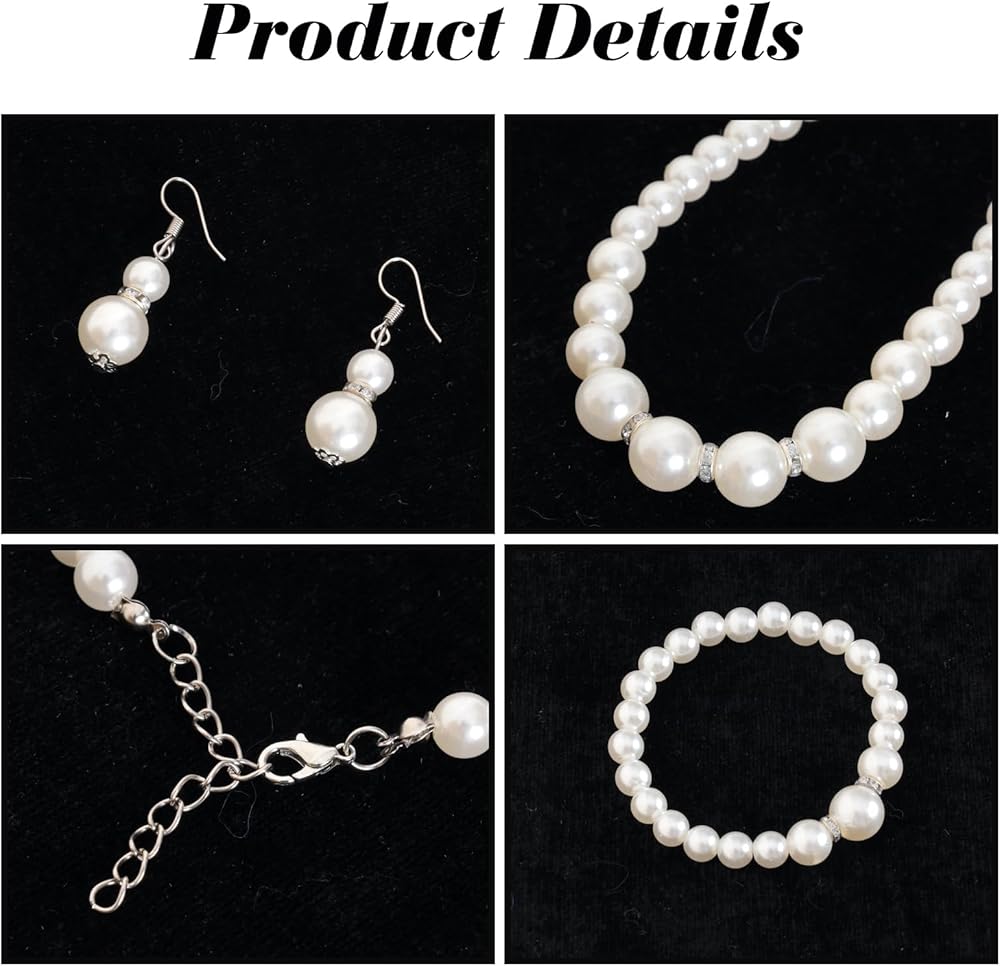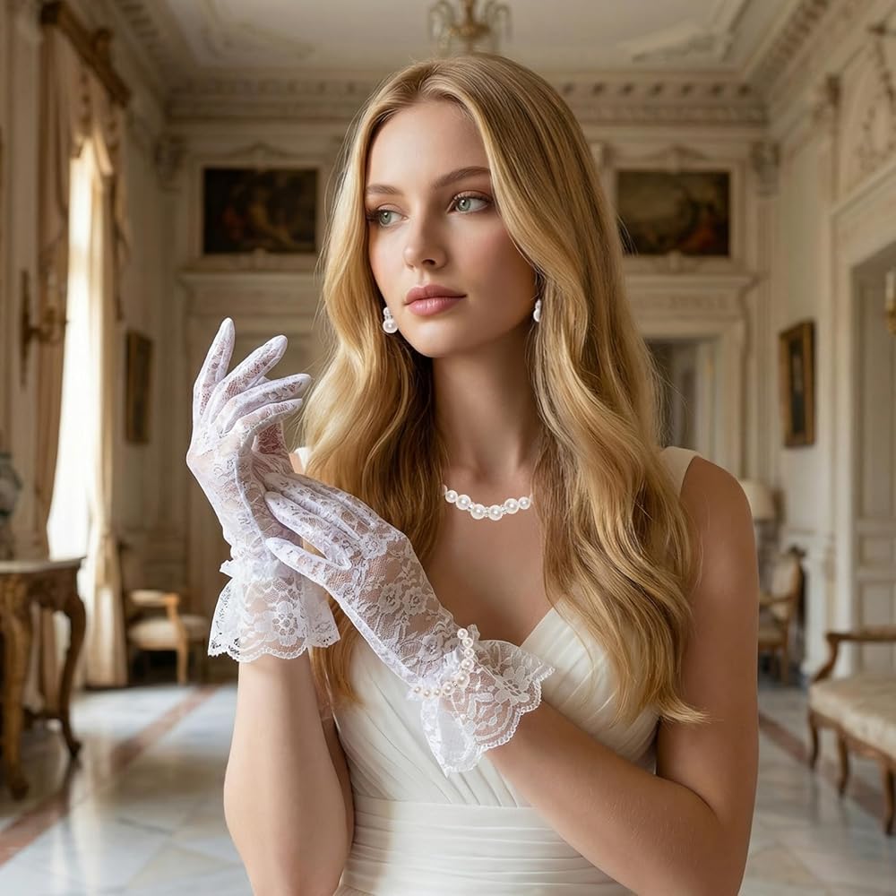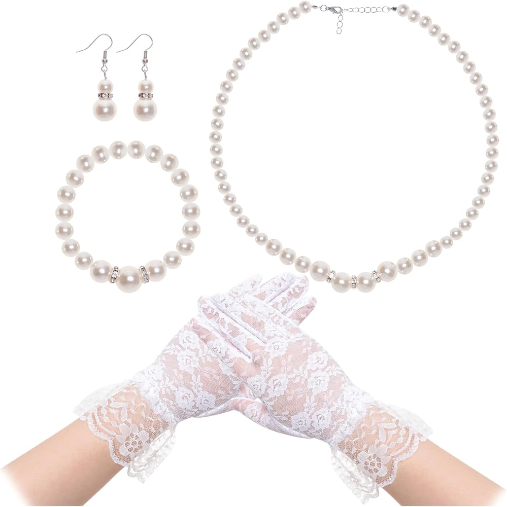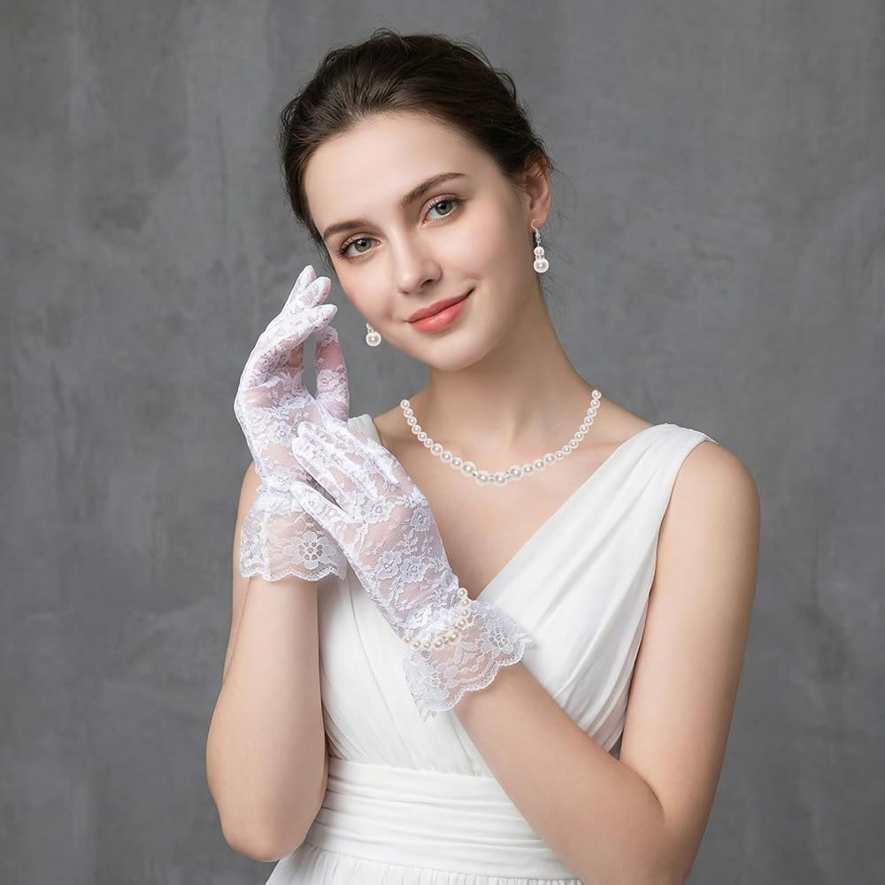 • Elegant pearl jewelry set for petite frames: This coordinated faux pearl necklace, earrings, bracelet, and lace gloves set features a petite-friendly fit, soft shine, and refined texture—perfect for weddings, parties, proms, and elegant formal looks, helping you achieve a polished appearance instantly with minimal effort
