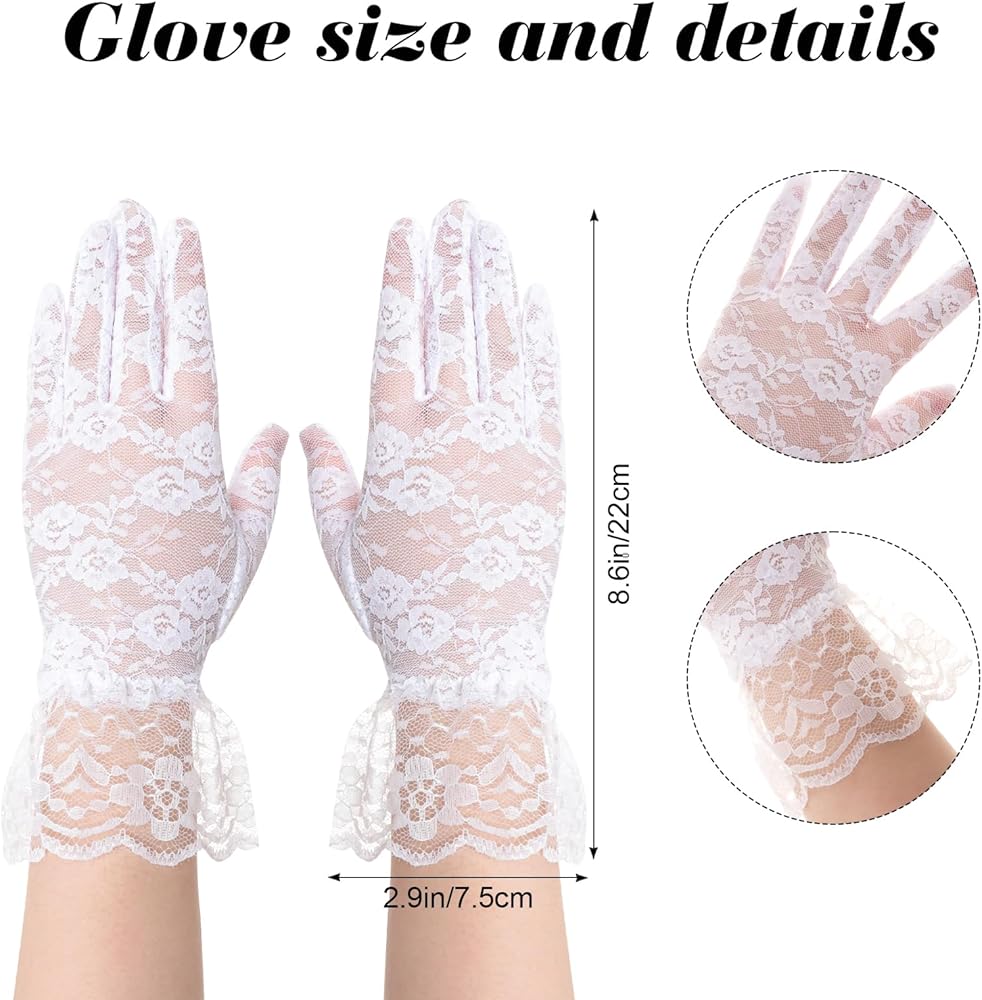 • Delicate lace gloves with compact sizing: Soft floral lace, breathable mesh, and an 8.6in x 2.9in petite-oriented fit blend comfort, stretch, and vintage charm, creating graceful hand details for ceremonies, receptions, celebrations, theater nights, and retro-inspired outfit styling