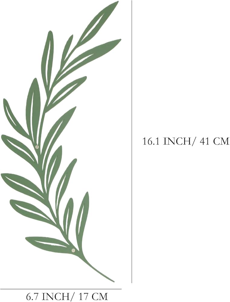 Transform your home with this stunning sage green metal olive branch leaf wall art, designed to bring a touch of nature-inspired serenity to your decor. The elegant botanical design features intricately crafted leaves and stems that create a flowing, organic silhouette, perfect for adding rustic charm to modern spaces. Made from durability metal, this piece combines strength with a lightweight, airy appearance, ensuring it maintains its beauty over time while appearing to float effortlessly on your wall.