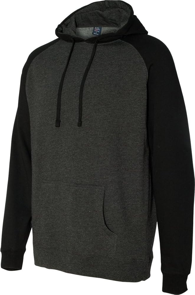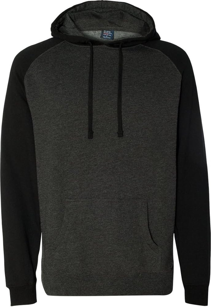 Independent Trading Co Raglan Hooded Sweatshirt. IND40RP - Large - Charcoal Heather / Black