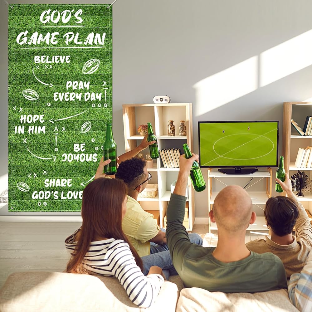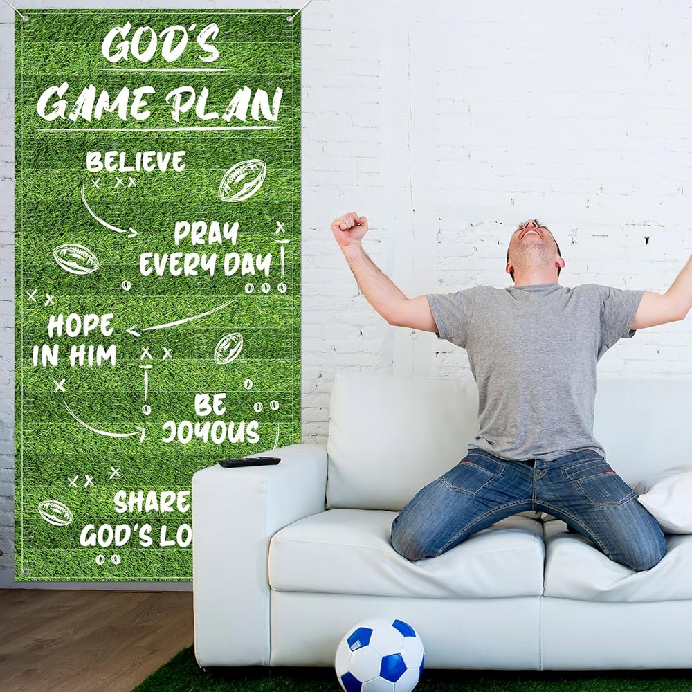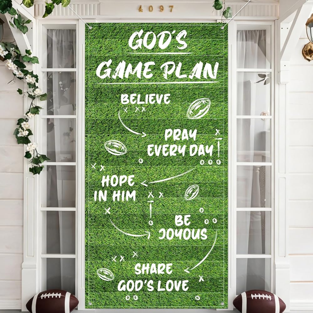 Christian Football Party Decoration Religious Door Cover Christian Style Porch Banner Football Theme Hanging Banner For Match Days Touchdown Sports Birthday Parties Indoor And Outdoor Supplies