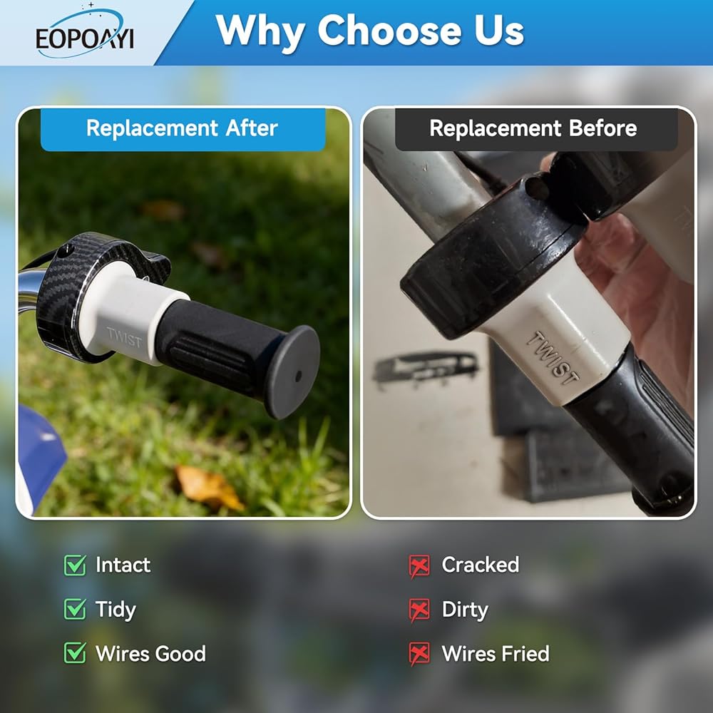 Premium Material: The throttle for Razor E200 electric scooter is designed with high-quality imitation carbon fiber material, which not only has a sporty and technological feel but also is more wear-resistant and scratch-resistant. The handlebar grips of Razor MX350 dirt rocket bike are made of premium rubber, which provides you with a hard and firm grip when you are riding