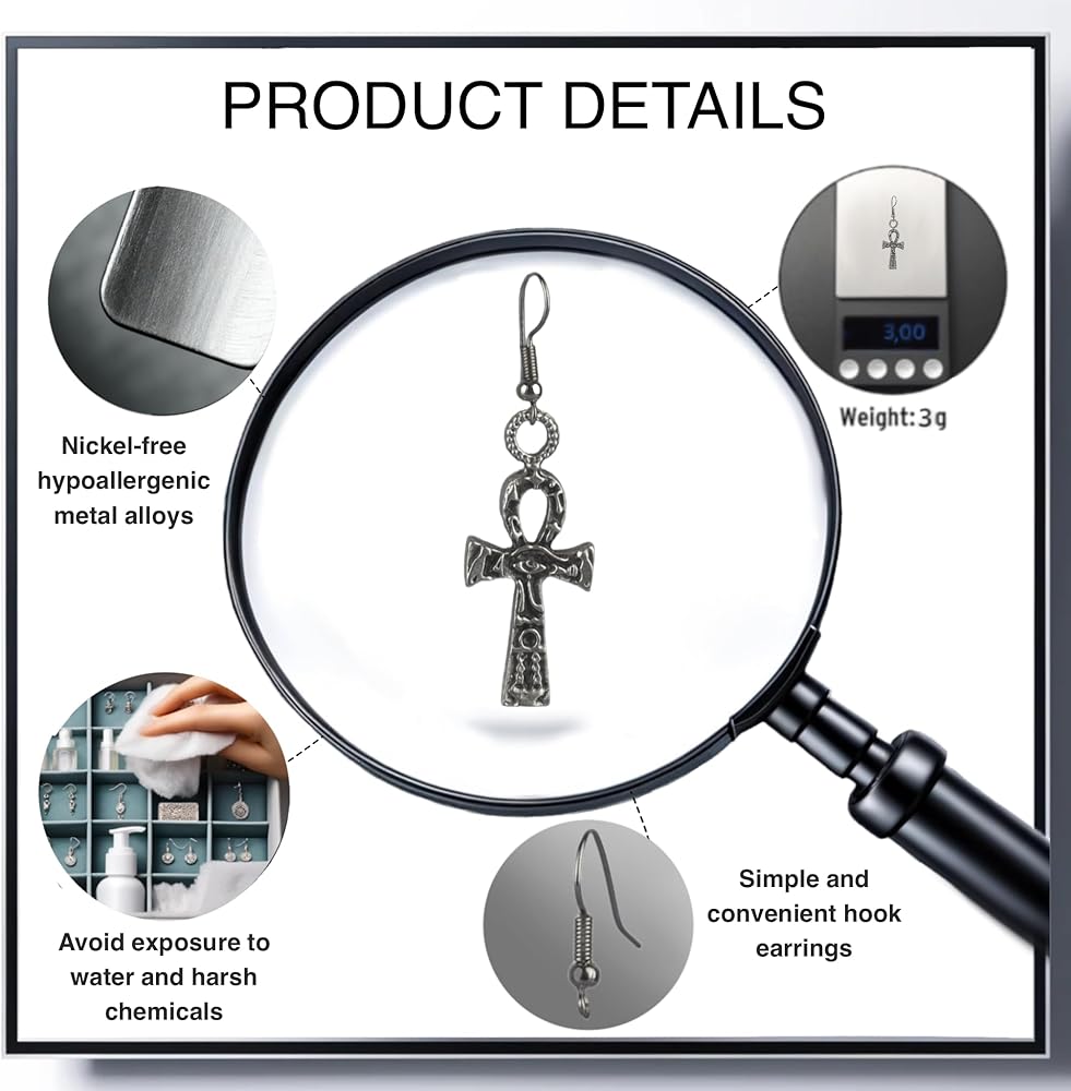 Each pair of these Ankh earrings is handmade using the traditional wax casting method, which may result in small natural imperfections that make every piece unique and full of character