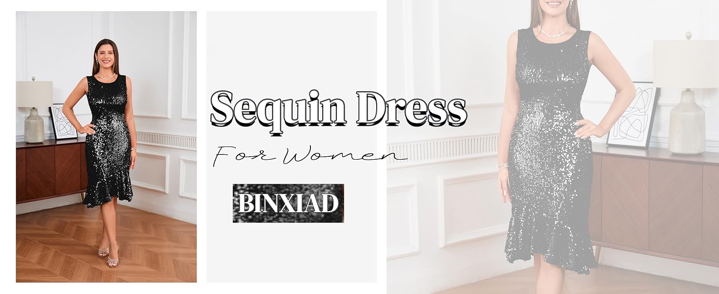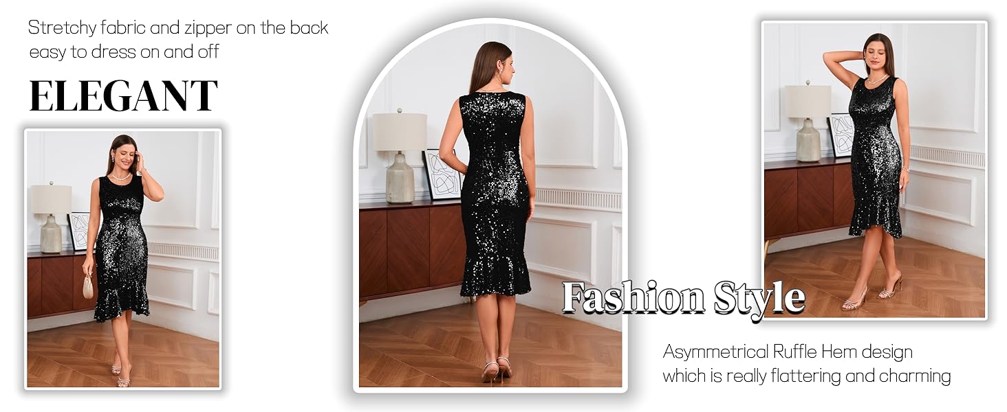 - Material: Polyester and sequins ,this dress is stretchy fabric and zipper on the back,easy to dress on and off.