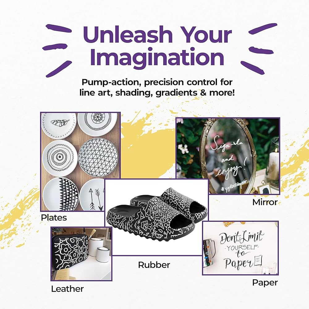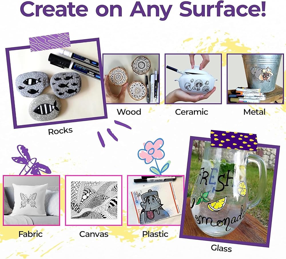 Mark Your Blank Canvas: Confidently create any landscapes or Zentangles with our fade-resistant, water based paint markers in black paint marker and white permanent marker sets. This acrylic painting pen turns any blank page into a canvas, ready for your artistic touch.