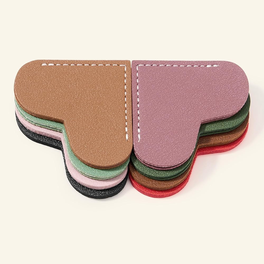 8 Pcs Leather Heart Bookmarks, Bookmarks for Women, Cute Heart Bookmark Corner, Book Marks for Teachers Students School Office Home Supplies