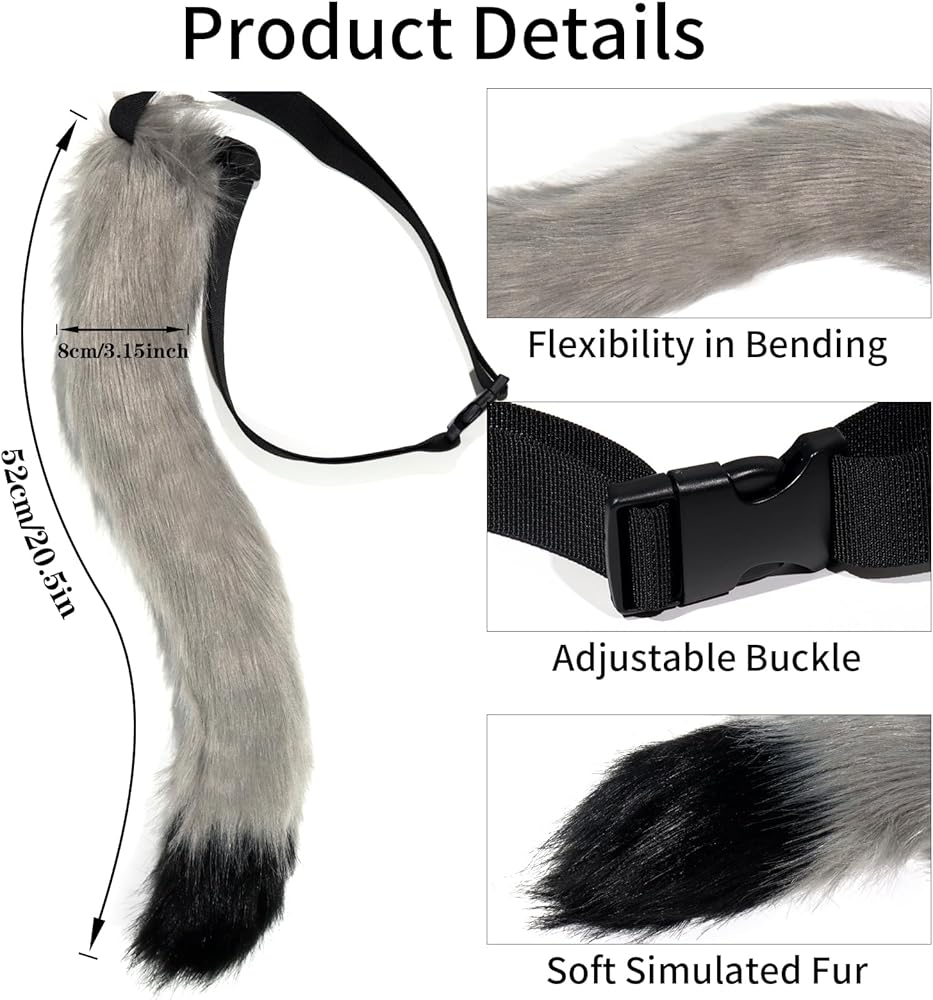 Perfect for Any Occasion:Great for Halloween, Christmas, cosplay parties, school activities, night clubs, fashion shows, Valentine's Day, Fourth of July, Graduation ceremony, Easter, etc.The furry tail works for fox or wolf costumes with ease.