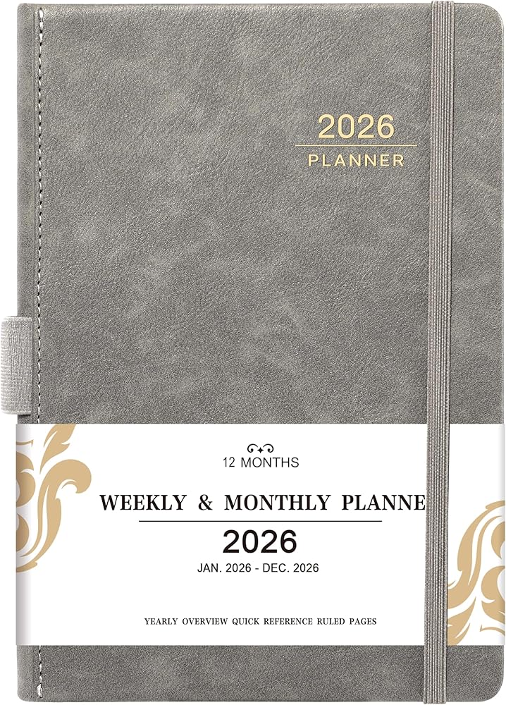 2026 Weekly Monthly Planner Feature Organization - Flexible Hard Cover+ Contact Pages + Yearly Overview of 2026 - 2027 + Holidays of 2026-2027 + 24 ruled pages