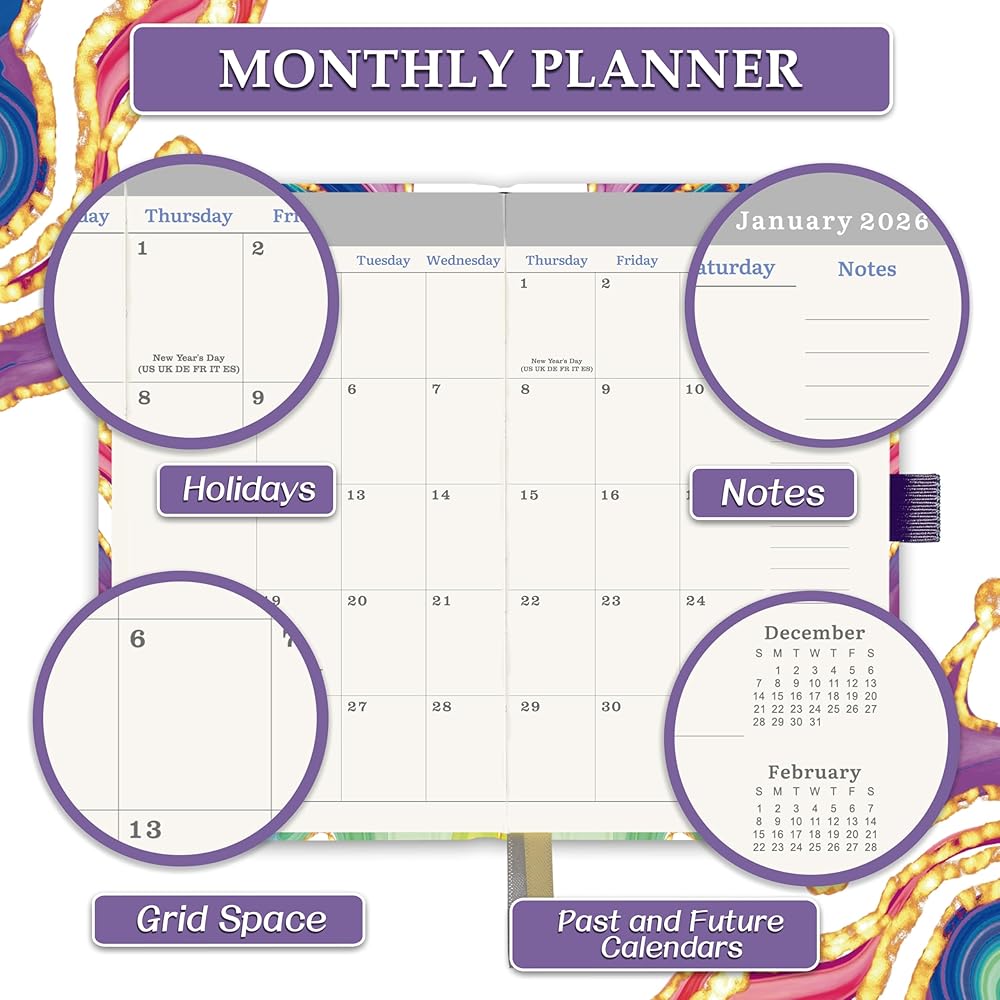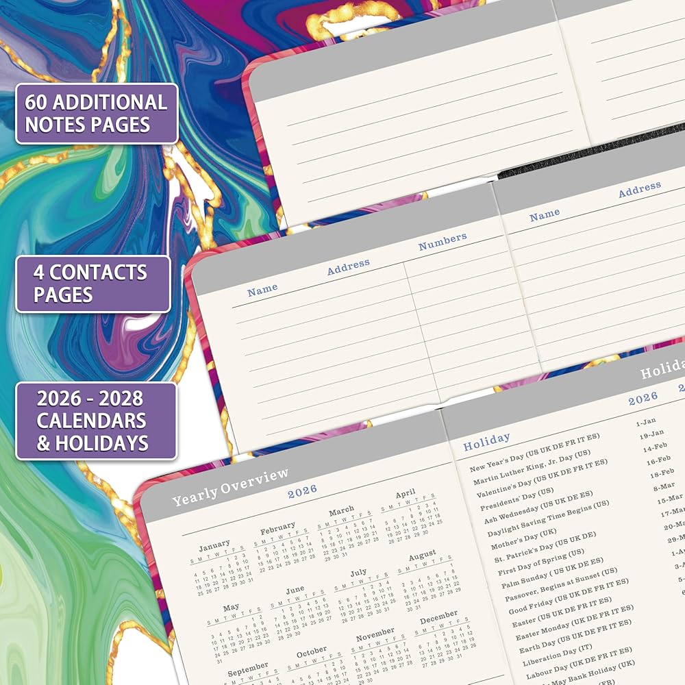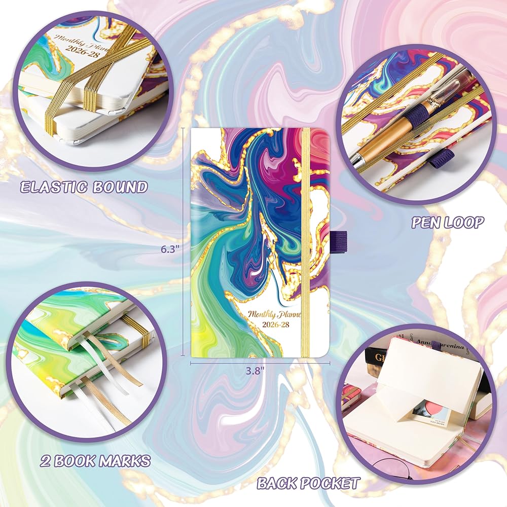 📚POCKET PLANNER/CALENDAR - Monthly Planner 2026-2028 covers 36 months from Jan. 2026 – Dec. 2028 which is perfect for long - term planning. Small, mini and compact, which measures at approximately 3.8" × 6.3", keep track of important dates, deadlines, special events, and more.