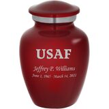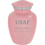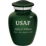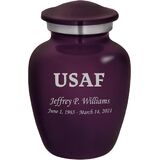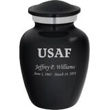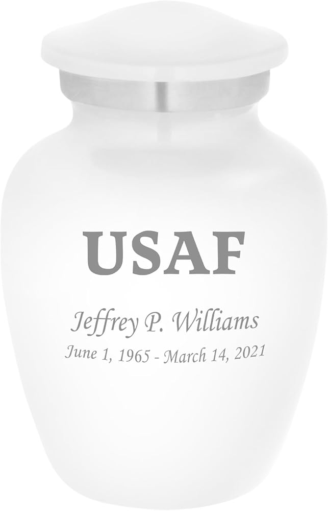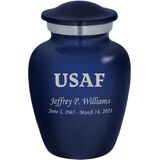 Our Air Force themed Homage line of personalized keepsake urns are cast from high-grade aluminum by master artisans in India. Our Homage line of urns provide a gorgeous and lasting memorial for your loved one. This stunning keepsake urn opens via a secure threaded top. These beautiful urns also feature a soft felt bottom to prevent scratching and marking of surfaces while the urn is displayed.