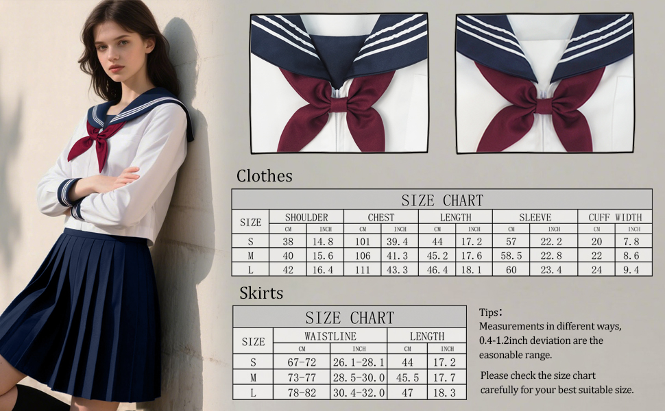 Complete Anime-Inspired Outfit Set:Your package includes: 1 long sleeve blouse, 1 pleated skirt with adjustable waist lock, 1 adjustable bow tie, and 1 pair of socks. Everything you need for instant transformation! (Check our updated size chart for perfect fit)
