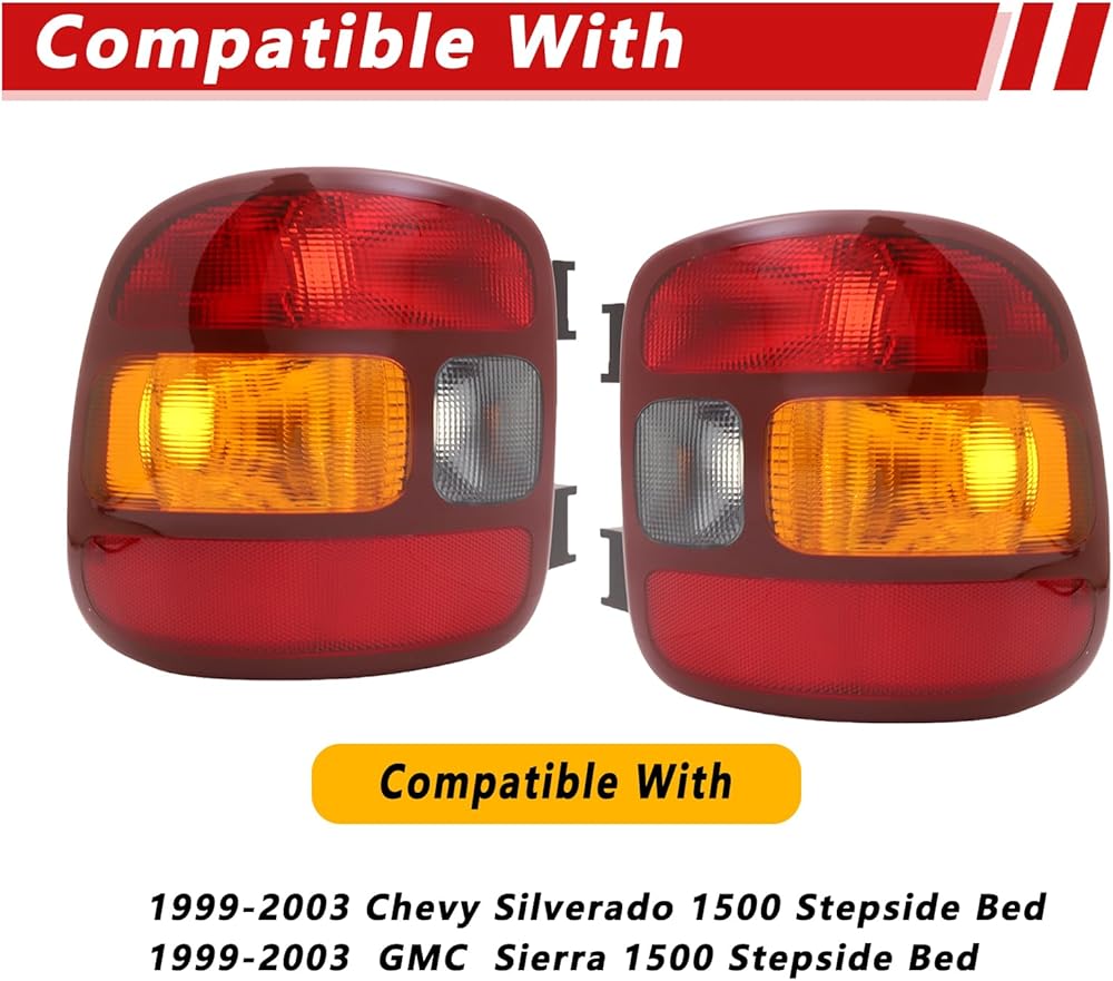 New Tail Light Compatible With Chevy Silverado 1500 Stepside 1999-2003 Gmc Sierra 1500 Driver and Passenger Side Lights Red Edge Replace GM2800136 GM2801136 15224277 15224276