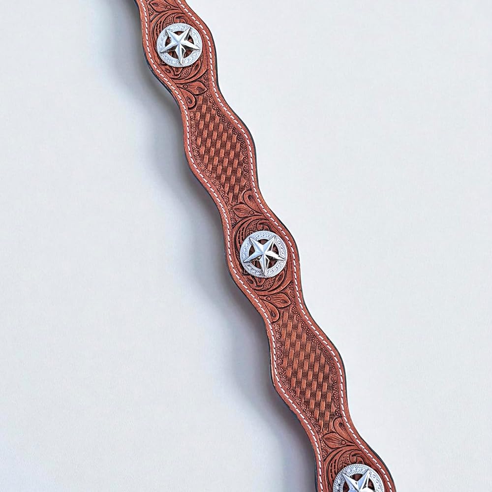 This western leather belt puts together any outfit. Crafted out of best quality full grain natural leather, each belt is made with durability and western flair. The hand cut and stitched wave design, inclusive of the stars buttons add a unique pop to any outfit, ensuring you stand out from the crowd with your cowboy accessory. It is a comfortable fit that adjusts to you.