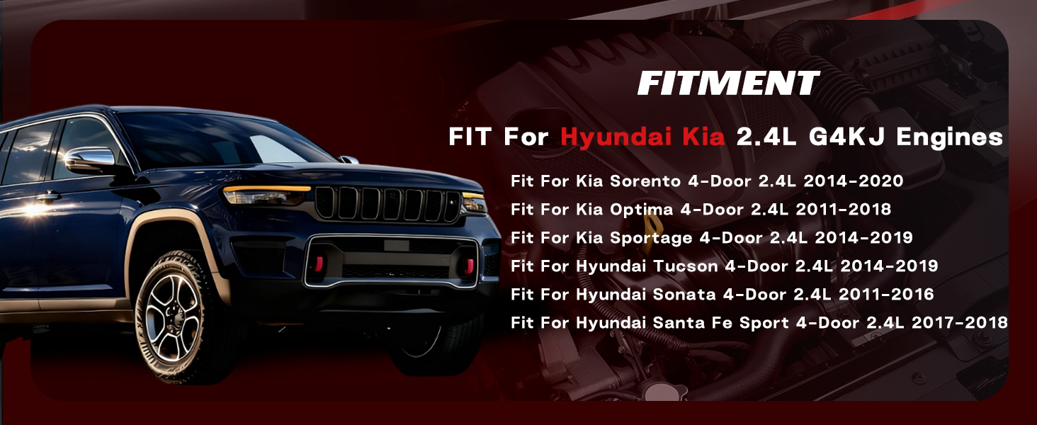 Fitment: Fit for Hyundai Tucson 2.4L 2018-2021; Fit for Hyundai Santa Fe 2.4L 2017-2020; Fit for Hyundai Sonata 2.4L 2015-2019; Fit for Kia Sportage 2.4L 2017-2021; Fit for Kia Optima 2.4L 2016-2020; Fit for Kia Sorento 2.4L 2016-2020;