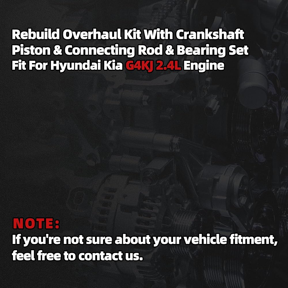 G4KJ 2.4 Engine Rebuild Overhaul Kit With Crankshaft & Piston & Connecting Rods Fit For Hyundai Tucson Sonata Santa Fe Kia Sorento Optima Sportage 2.4L 2011-2020 Replace# 23111-2G200 23510-2G500