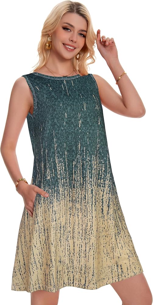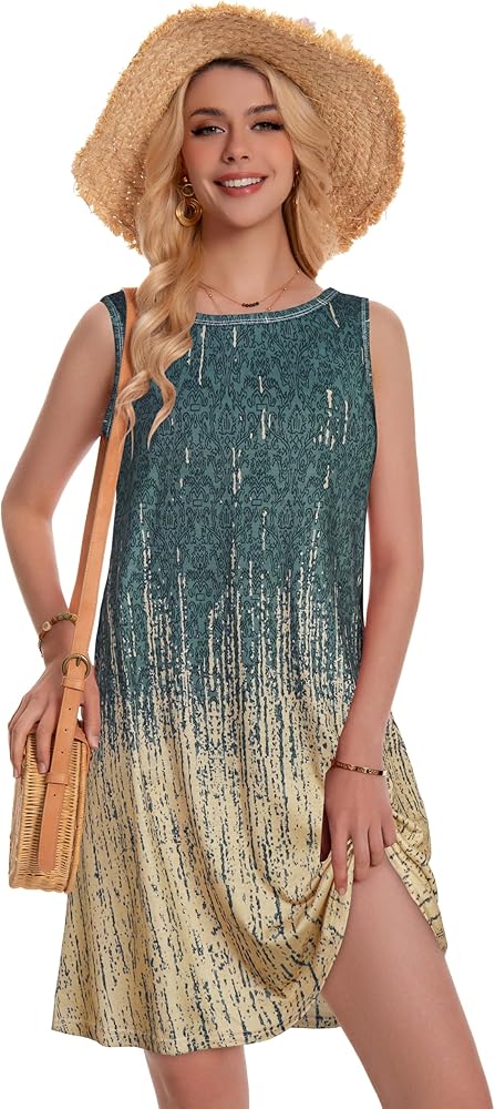 Womens casual summer dresses with two side hidden pockets,round neck,swing hem,which will flow with the wind blows and each step you take.What a graceful scene!Perfectly above the knee length is suitable to different height, you don't need to worry about being too short or too long.