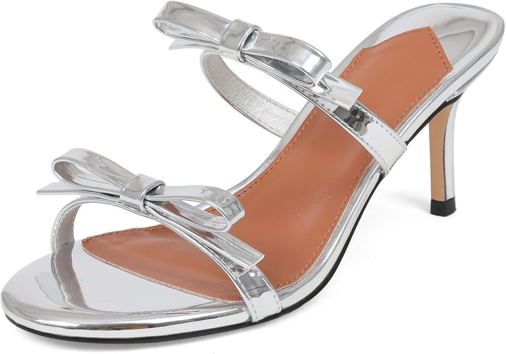 [Bow-Tie Heels]: These women's kitten heel sandals feature dual straps and classic rounded open-toe design, with two bow-tie as the standout detail, adding a touch of sophistication to your look.