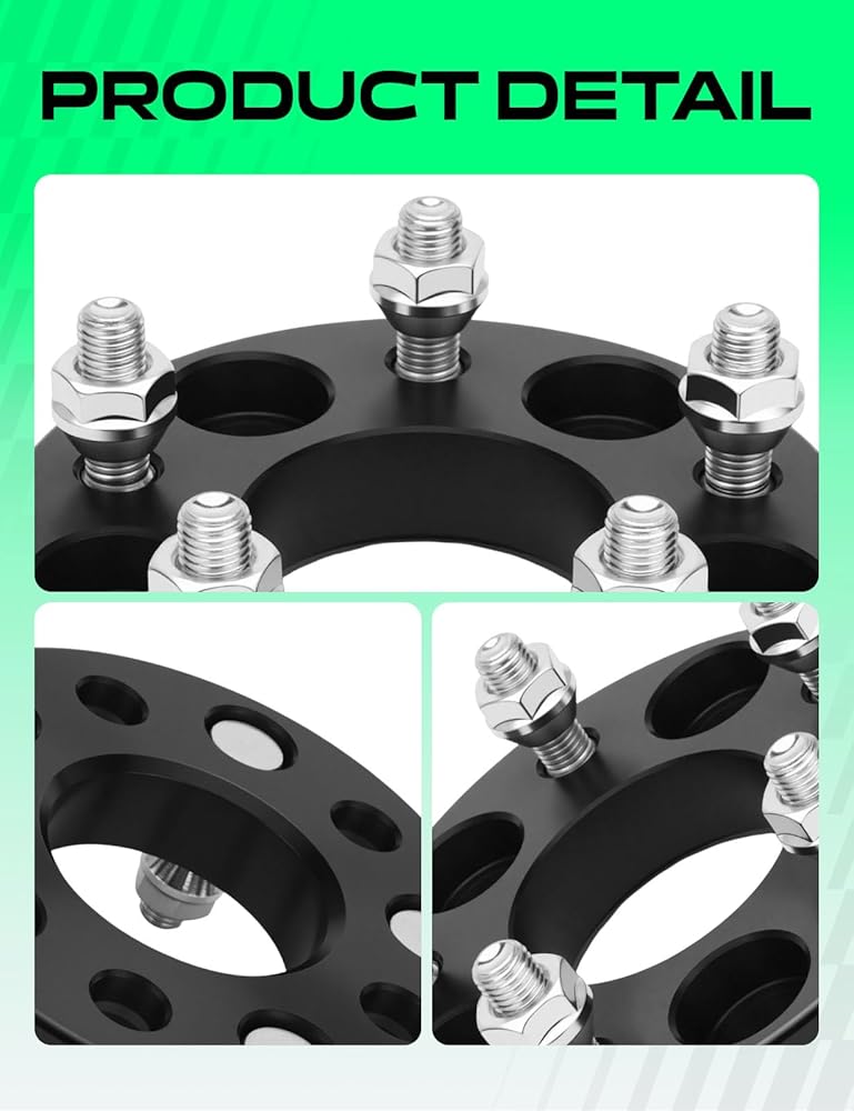 About the Tire adapters: 5x4.5"(5x114.3mm) wheel bolt pattern, 5x110mm vehicle bolt pattern and the bore size of the vehicle must be less than 65.1mm | 1 inch thickness, this is also the size at which the wheels will be pushed out | M12x1.5 Studs & Lug Nuts| Recommended torque:70-80 FT/LBS | 12.9 grade studs, highest grade of bolt strength