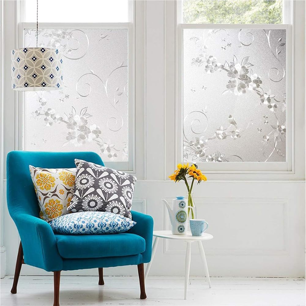 💚 Excellent Privacy Protection: Privacy level ★★★★☆, protect you from being peeped by neighbors or passersby, perfect to replace heavy curtain and blind. 3D flower pattern and frosted design decorate your window, provide privacy and allow light in.