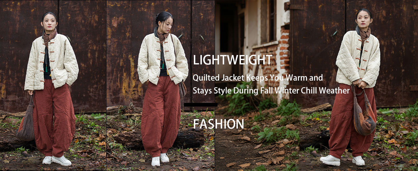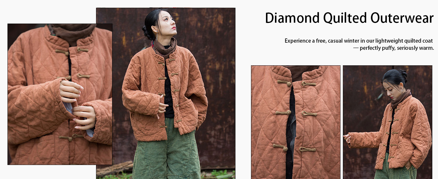 DESIGN FEATURES: Traditional Chinese Quilted Jacket, Unique Bat Sleeve and Classic Frog Buckle, Elegant Appearance, Great Inclusiveness, Adding Cultural Charm
