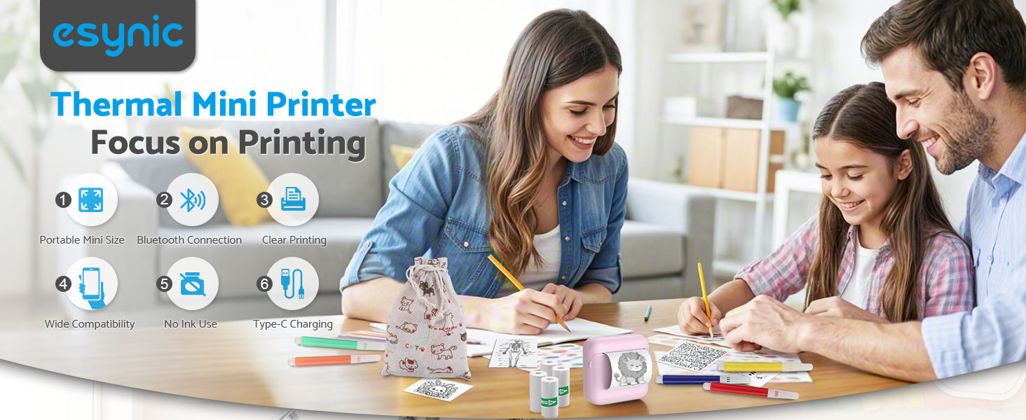 🖨️ [No Mess, No Stress Printing]---:Bye-Bye Ink Cartridges, Hello Freedom!Our eSynic sticker printer machine ► Prints crisp AF – notes look typed, not like your 3AM scribbles► ZERO ink, ZERO drama – thermal tech means no leaks, no refills, no “why is it printing pink??” moments► Smudge-proof & water-resistant – survives coffee spills, rainy walks to class, and your roommate's questionable kitchen habits
