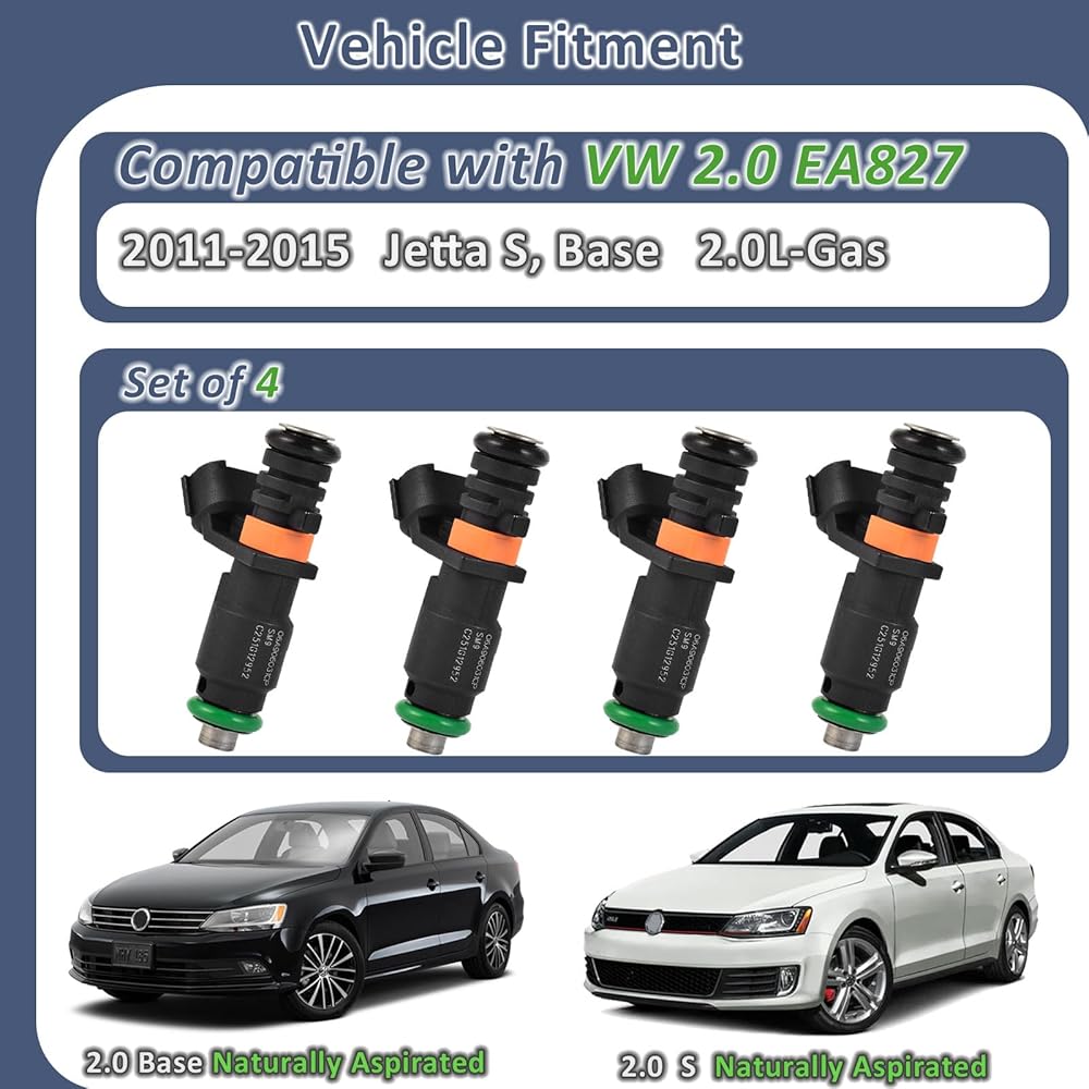 [Vehicle Fitment] - 2011-2015 Naturally Aspirated 2.0 Jetta S Base Fuel Injectors. 4 PC Set.