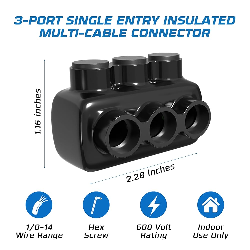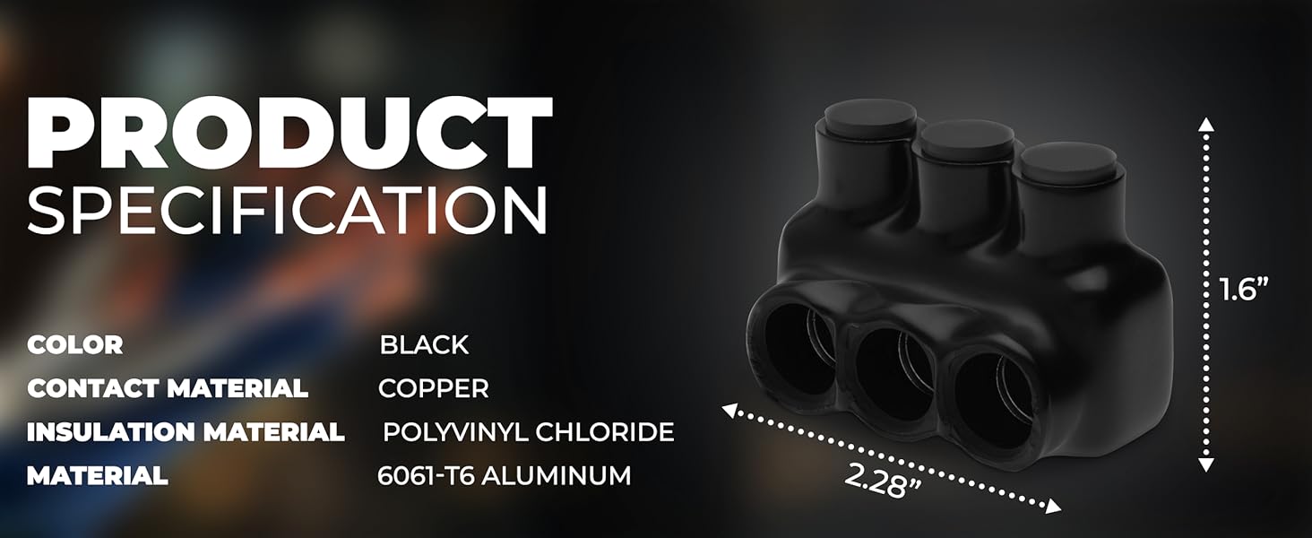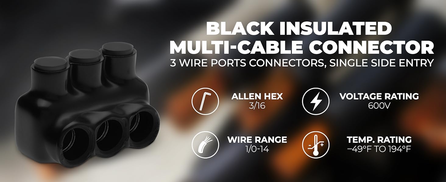 ADVANCED INSULATION TECHNOLOGY: This black insulated connector provides superior protection for electrical connectors. Suitable for splicing 4-14 AWG wires with 3/16 hex screws.
