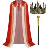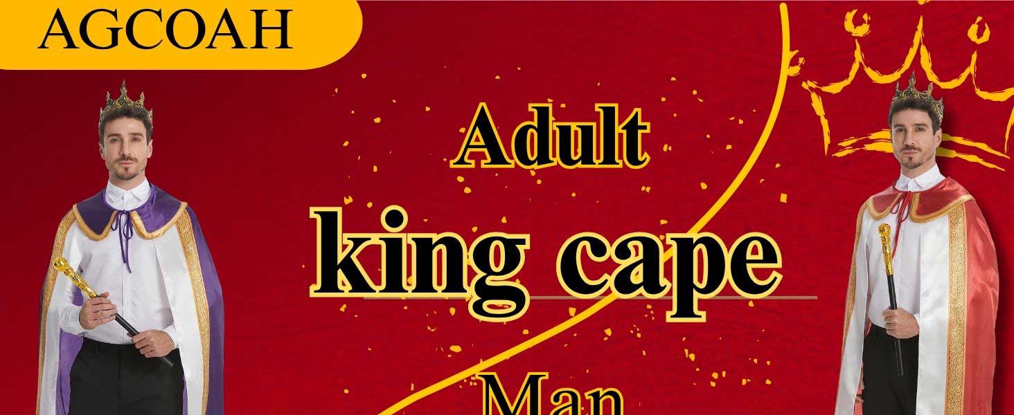 Package: Adult king cape robe 3-piece set includes a luxurious cape, a majestic crown, and a regal scepter