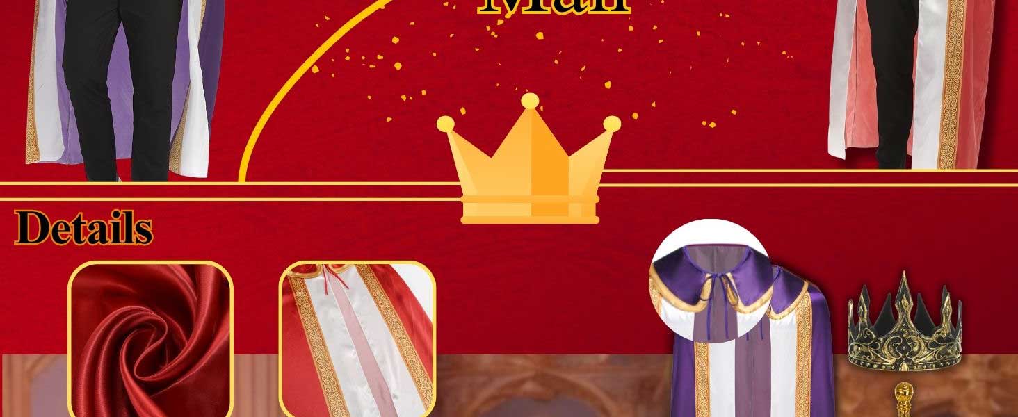 Occasion: King Costume for Men and Women Perfect for themed party, Halloween, Carnival, Christmas, Mardi Gras, Renaissance festival, Birthday party, Masquerade ball, Medieval party