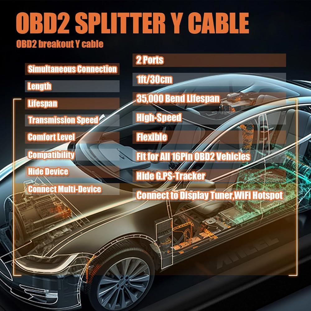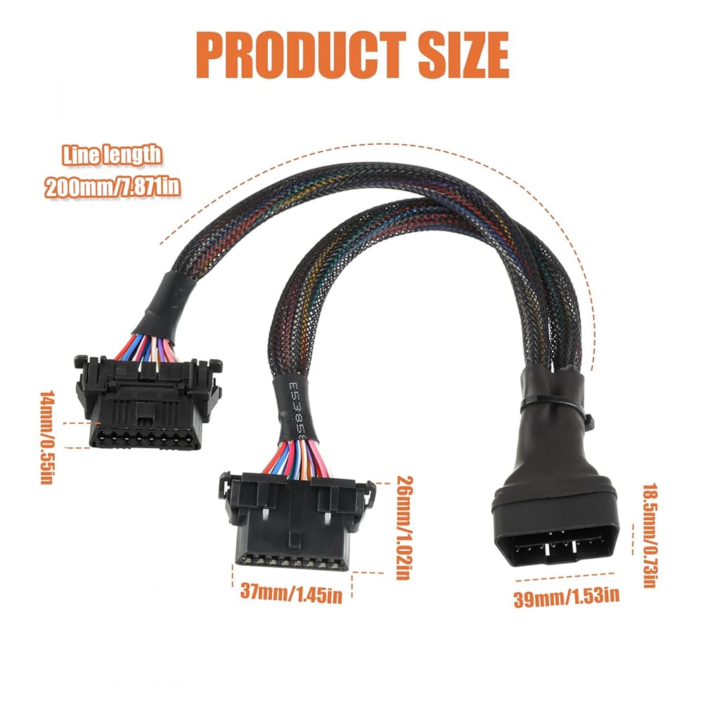 16Pin OBD2 Y Splitter Extension Cable Length: 30cm/12inches.