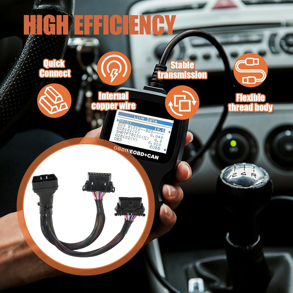 1. Safe, sturdy and supports all standard OBDII protocols, Plug and play, works on all standard OBD2 devices (code reader etc).