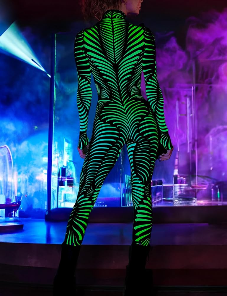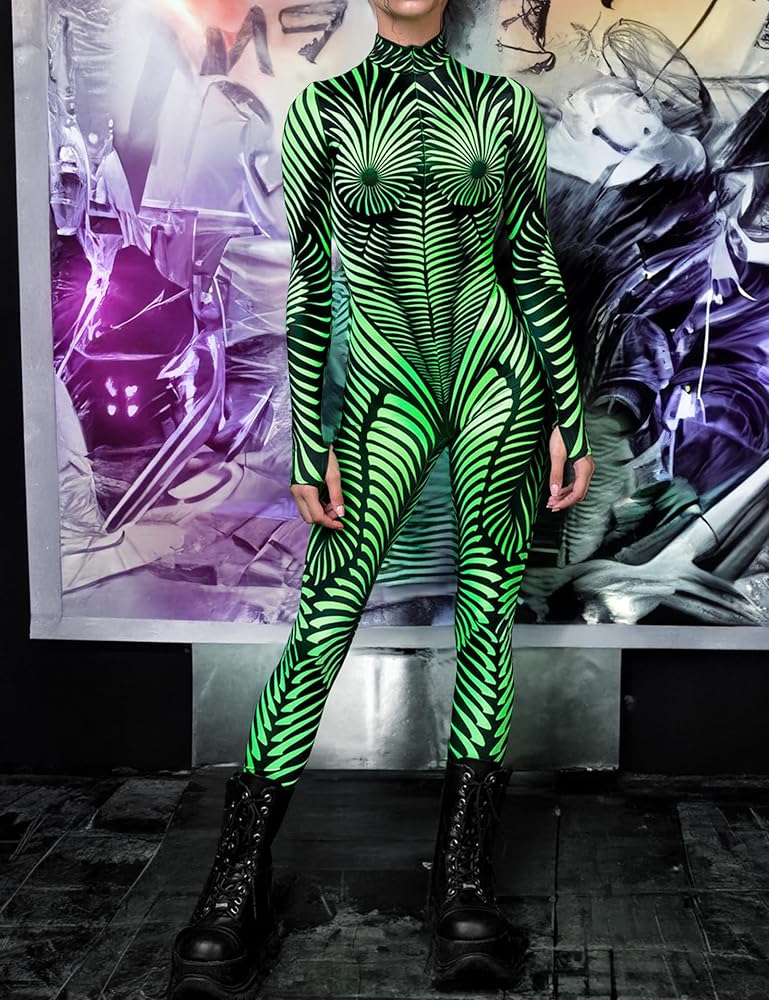 Design: Women Halloween Bodysuit with Realistic 3D Digital Printed,All Over Print Design On Front and Back, turtleneck unitard,pull on closure.bodycon skinny jumpsuit.