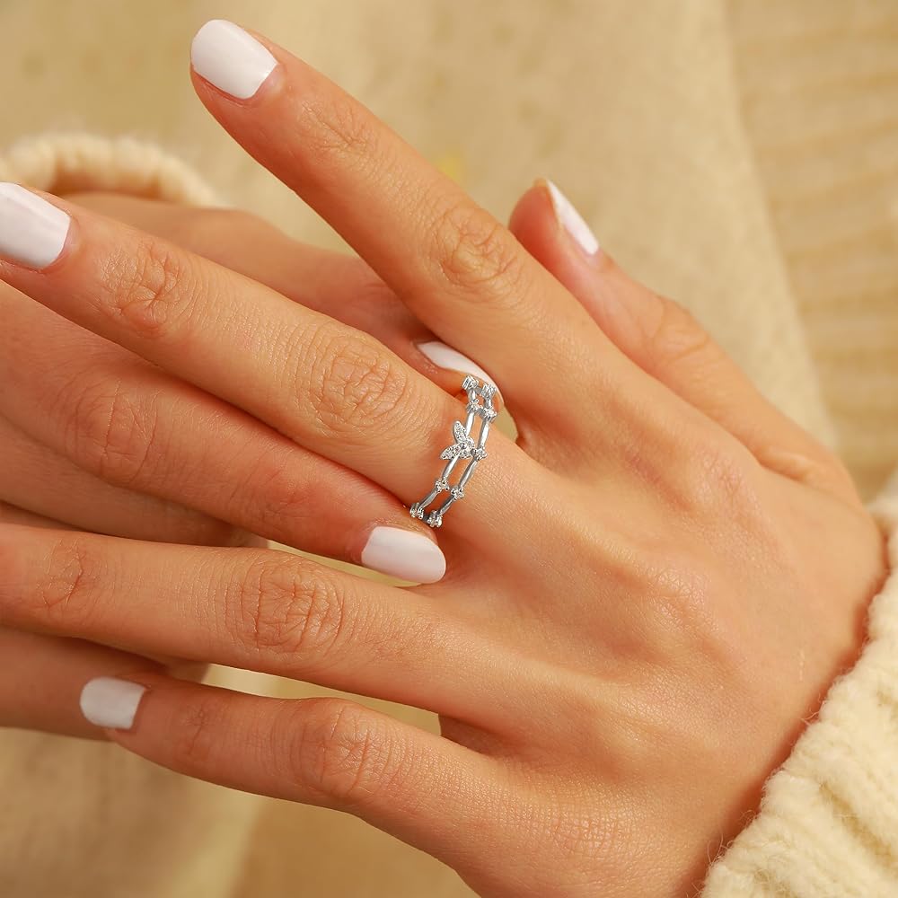 【Butterfly Rings For Women】: This twig ring are decorate with sparkle cubic zirconia butterfly, show fashion and delicate look. A cute ring is must-have jewelry for a women! This sterling silver ring can be matched with all styles jewelry, suitable for stackable wear or wear alone, you will get lots of compliments when wear this beatuiful ring.