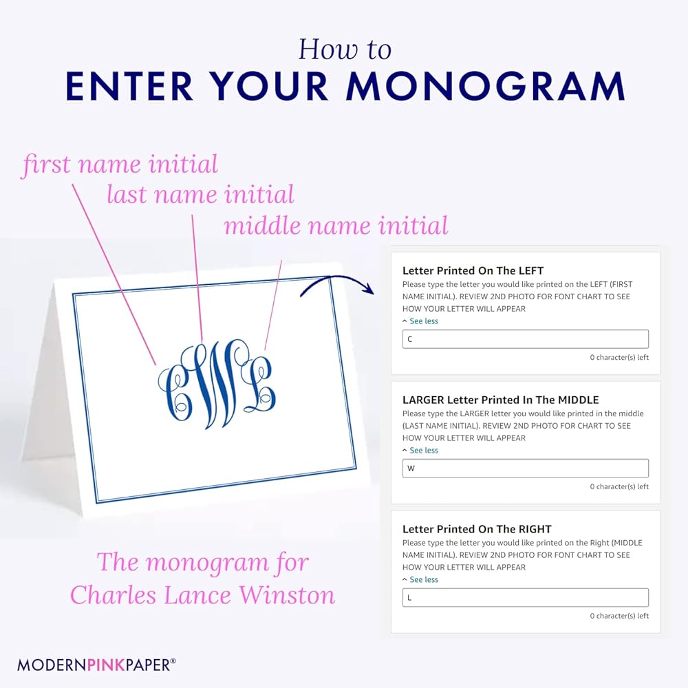Floral Monogram Stationary Set FOLDED NOTE CARDS, Monogrammed Stationary Set with Envelopes, Personalized Monogram Stationery Set for Women, Your Choice of Colors and Quantity