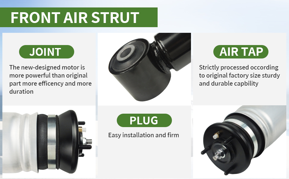 【Premium Quality Front Air Suspension】: The front shock absorbers are made of premium metal, aluminum alloy, and rubber, more durable, and sturdy in long time usage.The mount interfaces are designed to meet OE specifications, ensuring effortless and precise installation every time. for land rover lr4 front right struts