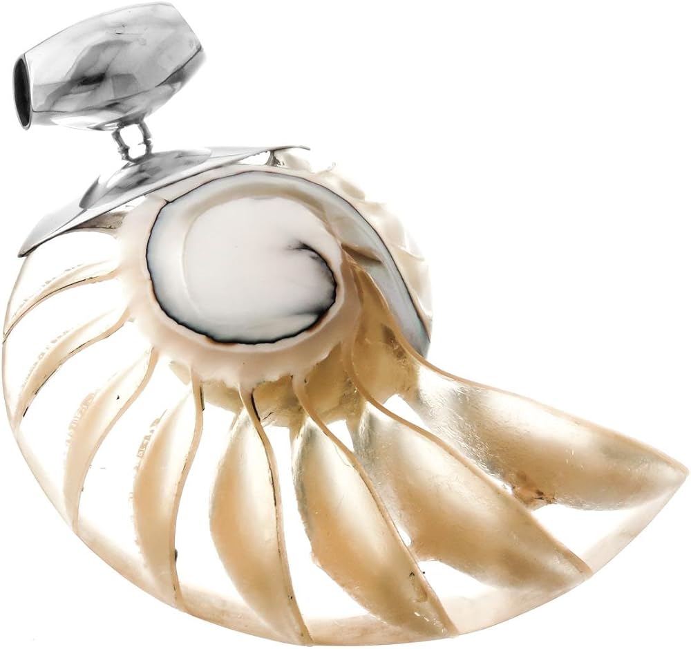 - Pendant Material: Natural nautilus shell. The removed shell walls expose the chambers inside
