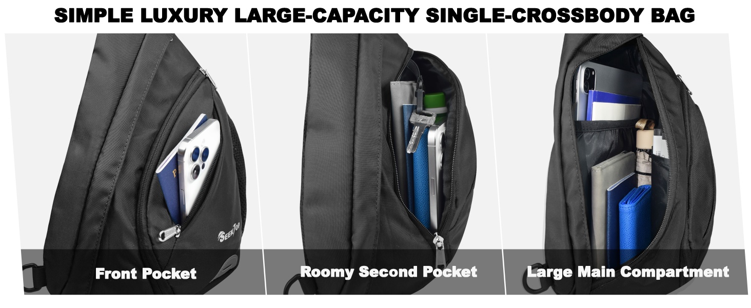 【Ergonomic Design with Breathable Pressure-Relief】 This waterproof shoulder bag features a honeycomb breathable back panel that prevents sweating, and is paired with a 2.34"-wide adjustable strap (22.5-44" in length) for switching between left and right shoulder use.Its Padded shoulder straps reduce pressure, making it comfortable for 8+ hours of wear—ideal for long hikes, city tours, or daily commutes.