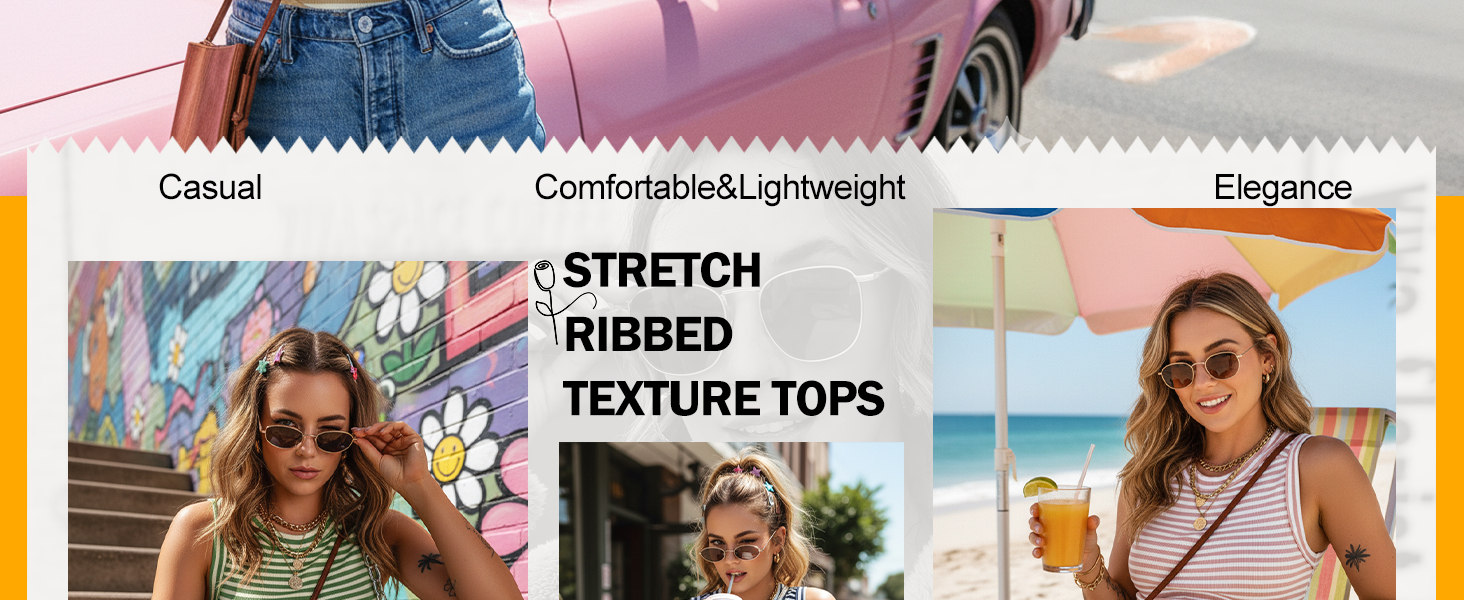 Premium Ribbed & Striped Fabric: Crafted from high-quality ribbed knit fabric, this tank top features a classic striped pattern, breathable material ensures all-day comfort, making it an indispensability basic for your summer wardrobe.