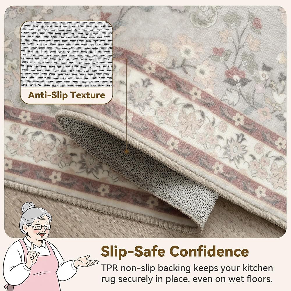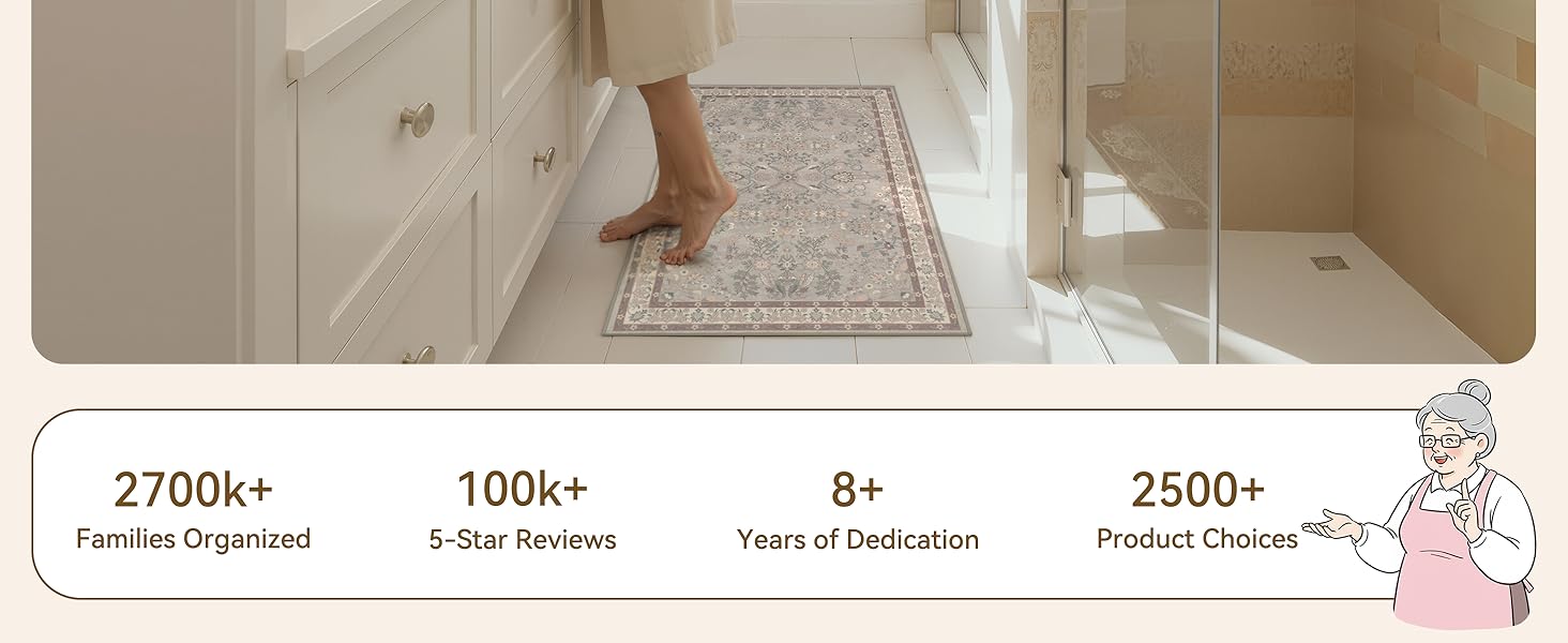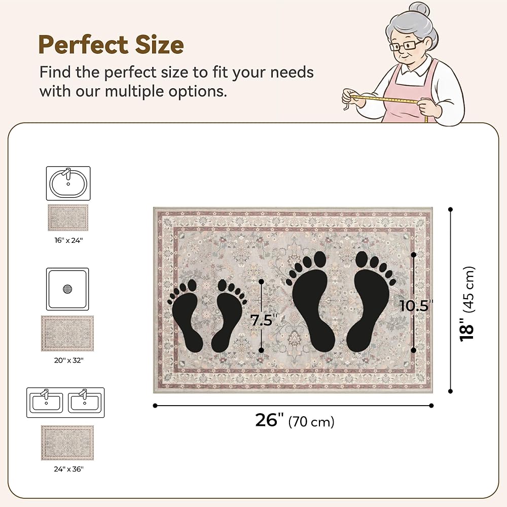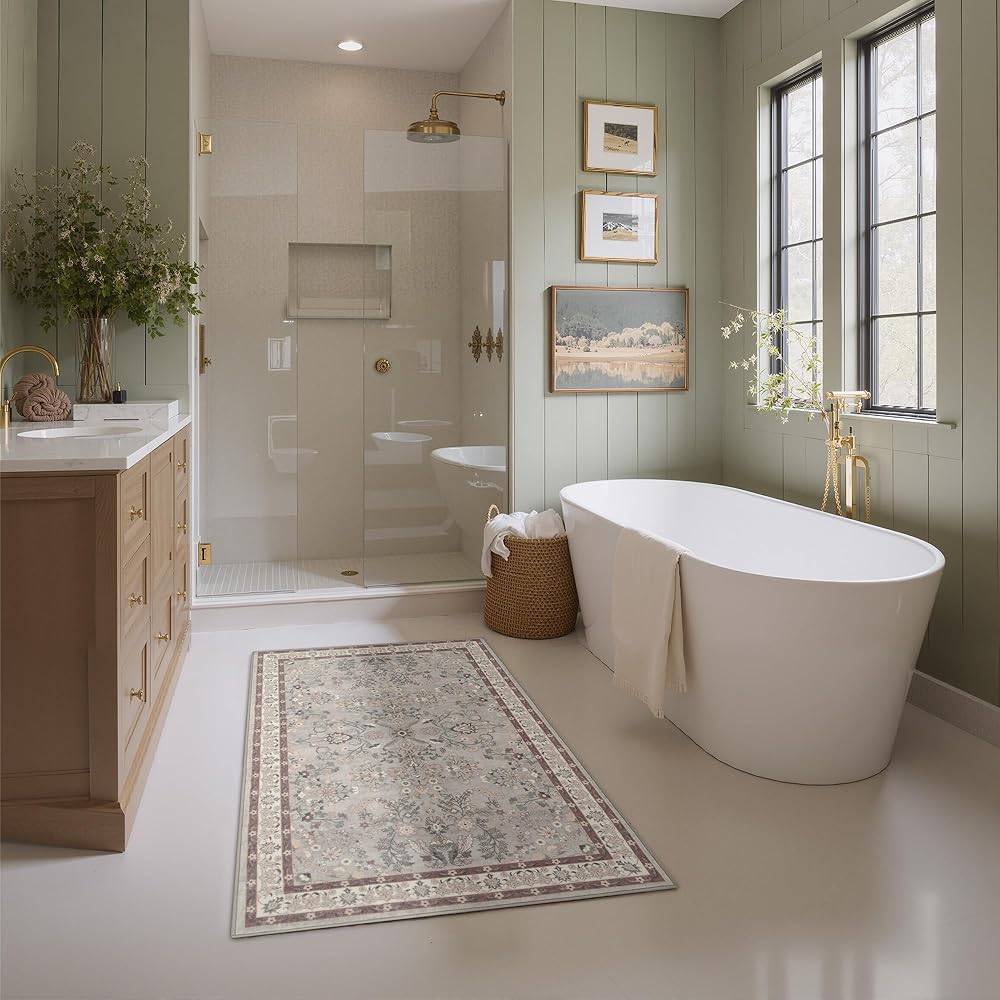 Unique Boho-Chic Design:Our exclusive distressed boho pattern turns your floor into a statement piece. More than a mat, it's an effortless decor upgrade that hides everyday wear while adding personality to your bathroom