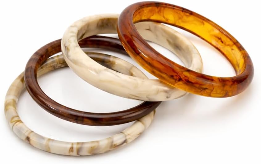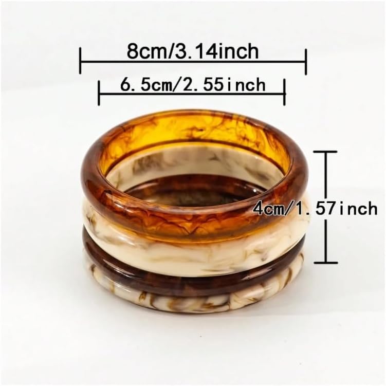 Acrylic Resin Chunky Bangle Set: Constructed From Durable Acrylic Resin With A Glossy Finish That Creates An Elegant Marbled Effect And Smooth Surface, Can Be Worn Individually Or Stacked Together For Different Looks, Each Bangle Measures 2.55 Inches (6.5cm) In Diameter, Perfect For Standard Wrist Sizes