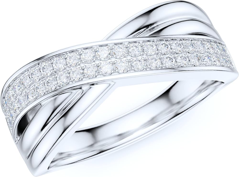 Sterling Silver 7.6mm Wide Unisex CrissCorss Two Rows Simulated Round Brilliant Diamond or Genuine Moissanites Wedding Band Fashion Ring in Kuwait