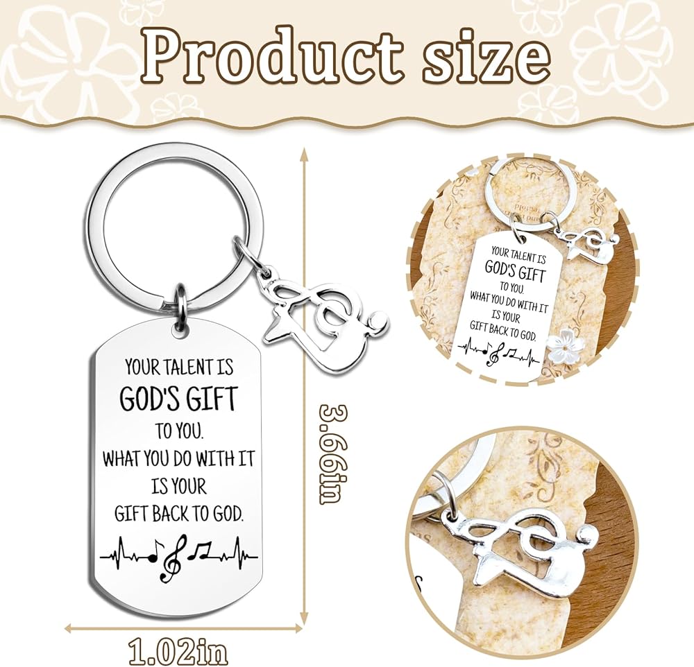 Celebrate music and faith with this "Your Talent Is God's Gift to You" Music Note Keychain — blends musical passion with spiritual encouragement, inspiring musicians to cherish their craft daily. Why Music Lovers Will Adore It: ✔ Music-faith blend: Engraved heartfelt quote + tiny music note — a heartfelt music gift, perfect for daily carry as meaningful music stuff. ✔ For every music devotee: Tailored for teachers, students, singers, hobbyists (men/women) — ideal thank-you/graduation gifts honoring their dedication. ✔ Fits special moments: Christmas stockings, recitals, birthdays, graduations — shines as unique music gifts for men and women, making occasions memorable. ✔ Durable & portable: Premium stainless steel (rust/fade-resistant), 1.2-inch keyring — lightweight for keys, instrument cases, retains shine for years. ✔ Ready to gift easily: Soft velvet pouch — 24h service, seamless gifting for music lovers and believers.