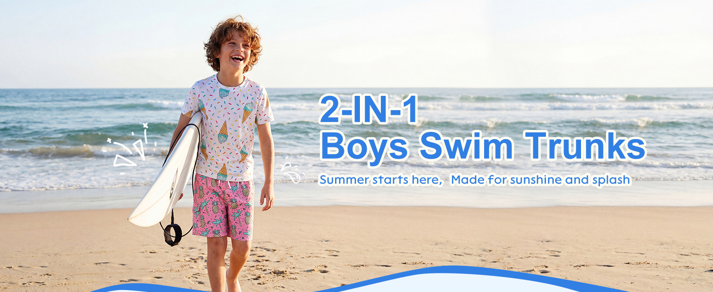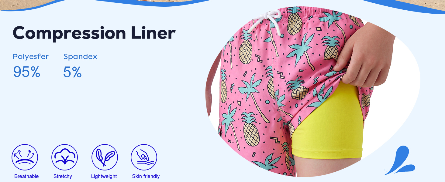 2 in 1 Boys Swim Trunks: The swim shorts wtih a built-in boxer brief compression liner. Provides superior support and prevents chafing, especially during swimming or water sports