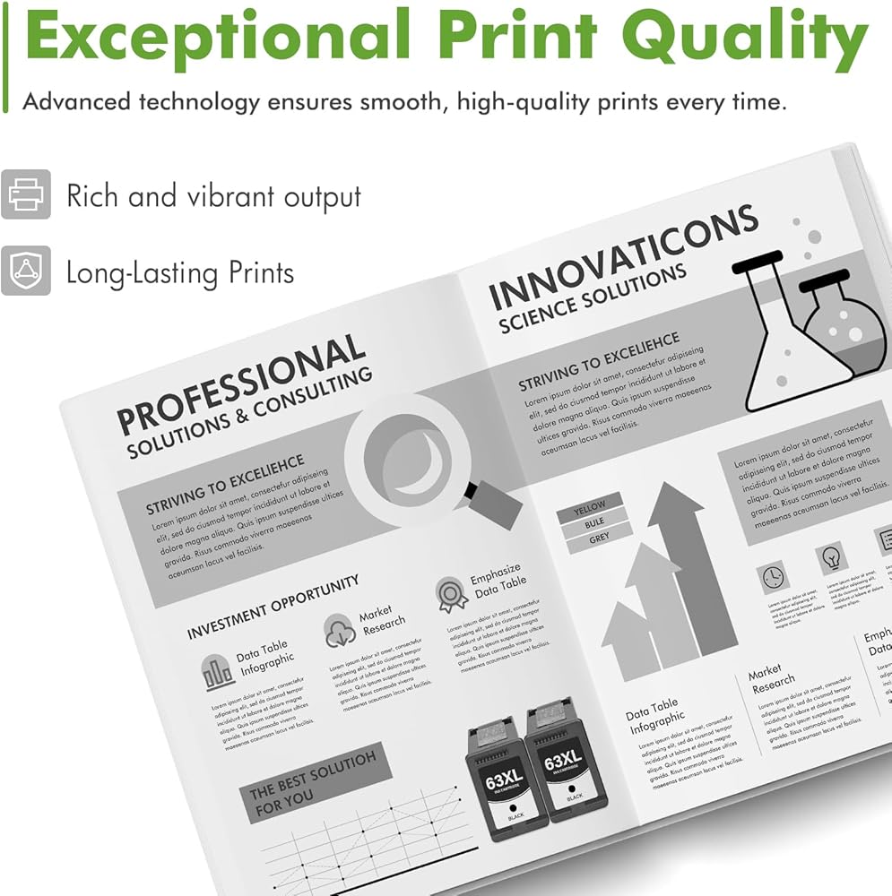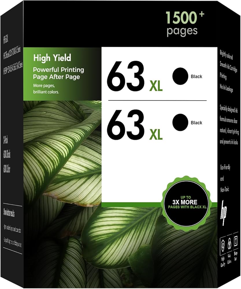 High Page Yield: Up to 750 pages for each 63xl 63 black ink (Letter/A4, at 5% coverage)